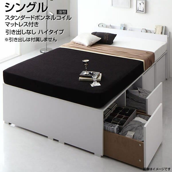 シングル 収納ベッド 小さめ 小さい 小上がり 引き出しなし ハイタイプ 薄型スタンダードボンネルコイルマットレス付き 大量収納ベット 収納 棚付き 宮付きコンセント付き 頑丈 丈夫 衣装ケース収納 敷布団対応 おしゃれ 一人暮らし ワンルーム 子供部屋 子供ベッド 黒 白 茶